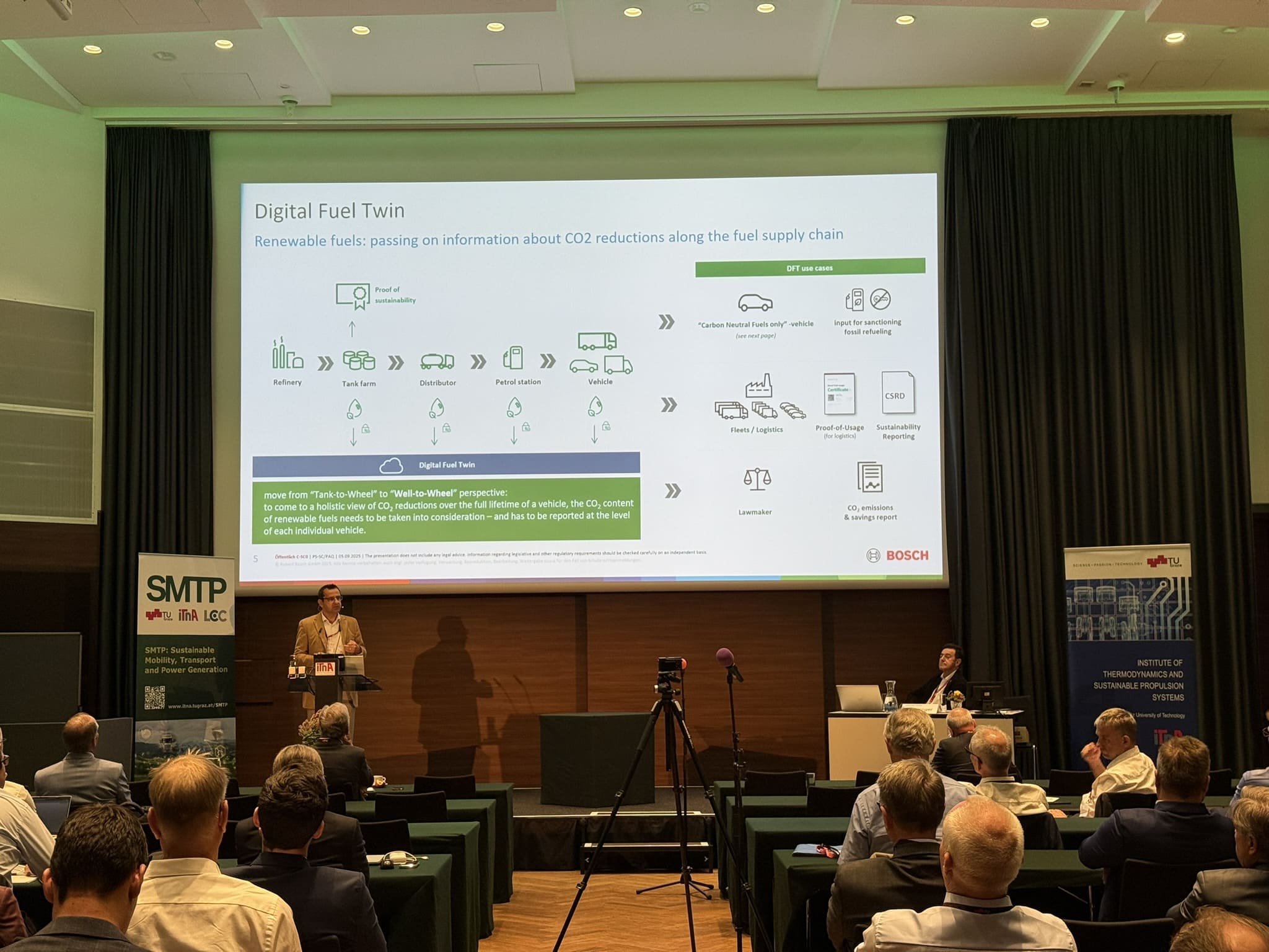 The SMTP conference “Sustainable Mobility, Transport and Power Generation” took place from 4–5 September 2025 at the Graz Congress. To mark its 20th anniversary, around 220 participants from more than 15 countries gathered to discuss current trends and innovations in the field of sustainable propulsion systems.